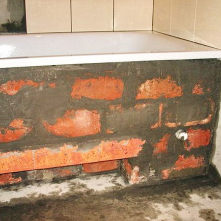 Самое главное в устройстве экрана под ванну учесть все нюансы, которые впоследствии будут играть значение. Если помещение уборной комнаты очень маленькое, то поверхность экрана желательно сделать из панелей ГКЛ или ОСП - под наклоном. Таким образом, пол станет на несколько сантиметров шире. Во втором варианте можно использовать любые строительные блоки или кирпич, чтобы сделать прямую поверхность. Особое внимание стоит уделить отверстию под стопы ног. Если изготовлять поверхность экрана под наклоном, то ваши ноги могут подойти к ванне вплотную. Если поверхность экрана прямая и нет ниши под стопы ваших ног, то всегда будет вероятность, что передними мысками ваших ног будет отбиваться плитка. Такое происходит в тот момент, когда вы хотите набрать воду над ванной или постирать бельё, искупать ребёнка, каждый раз вы будите задевать нижний ряд плитки. Для того чтобы эта мелочная деталь не происходила в вашей жизни и не создавала дискомфорта, необходимо укладывать блоки или кирпич таким образом, чтобы оставалась специальная ниша по центру установленной ванны.